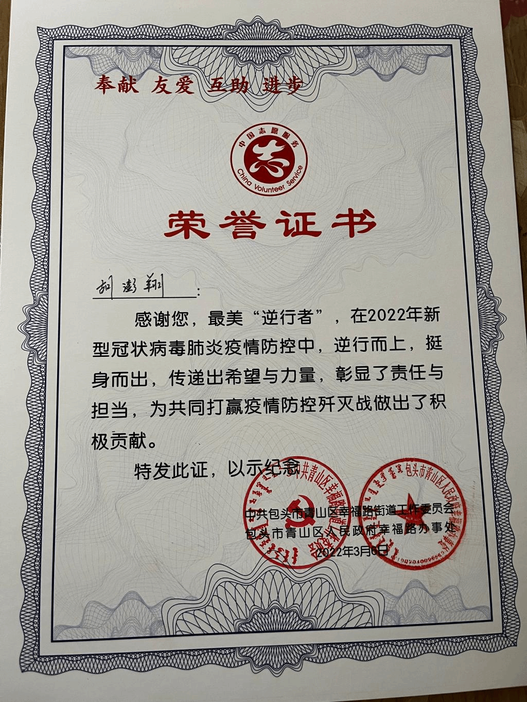 为响应公司党委关于扛起疫情防控使命担当的号召,永利集团304am登录研究生党支部全体党员同志充分发挥党员先锋模范作用,聆听身边群众所需,校内党员主动承担楼宇疫情防控志愿服务工作,积极帮助未返校同学寄送行李、查找材料、办理校内事务,从身边小事彰显党员服务奉献精神。校外党员服从所在地疫情防控要求,响应社区防控工作号召,担任社区疫情防控志愿者,为社会面疫情防控工作贡献自己的力量。其中,来自永利集团304am登录电子信息研究生党支部的胡澎翔同志在疫情期间主动担任内蒙古包头市青山区幸福路街道志愿者,负责当地居民的日常核酸检测任务。胡澎翔同志穿着厚重的防护服,每天清晨挨家挨户提醒小区居民做核酸,核酸检测开始后,他还需要维持队伍秩序,减少检测队伍混乱现象。而对于部分为重复核酸检测工作感到烦躁或不理解的居民,他则一遍遍耐心地向他们解释核酸检测工作的必要性,以取得居民群众的理解和配合;对小区里行动不便的老年人,胡澎翔同志则发挥自己对小区环境更为熟悉的优势,带领医护人员上门进行核酸检测,每天穿着厚重的防护服多次上下楼,即使每天的志愿服务工作强度高、困难多,他也咬牙坚持,甘心奉献,积极担任社区志愿者,直到社区恢复正常社会生活。胡澎翔同志的付出也得到当地部门的肯定,彰显了信院学子不畏困难勇担当的风采。