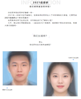 在线下破冰活动开始前,2021信息研班团委已经在线上对此次破冰活动进行了预热。10月12日,“信彩飞扬”微信公众号发布了一则推送——“2021信息研,我们乘风破浪而来啦”,推送中采用新颖有趣的数据分析方式对班级成员的基本信息进行了展示,还创新性的用每一位班级成员的证件照片合成了男女生“平均脸”。妙趣横生的推送既让同学们互相之间有了基础的了解,也提高了大家深入了解彼此的兴趣,为线下破冰活动的开展打下了良好的基础。