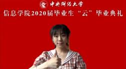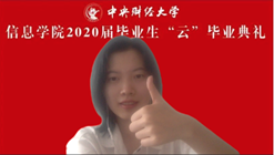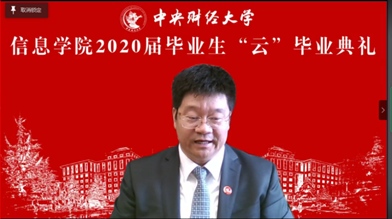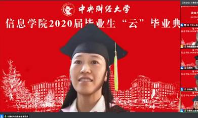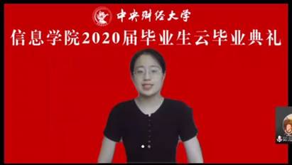 接着,毕业生代表同学发言。信息管理16的白如玉同学首先代表2020届本科毕业生发言。她回忆了毕业生同学们在中财大度过的四年难忘时光,学习生活中得到了师友的宝贵指引和陪伴,四年中,同学们丰富自我,成就梦想。她提到,在中财这所财经类院校,永利集团304am登录拥有财经和信息化学习的交叉背景,赋予了毕业生更丰富的选择,回归学术本质,引领员工不断探索。白如玉同学又回顾了2020年毕业季的意外时光,面对疫情带来的种种不确定,大多数人仍旧稳步向理想前行。她坚信每一位信院学子在未来的道路上都能担起一份责任,永葆对生活的兴趣,拥有独立自主的能力和美好的前途。