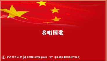 在暖心亲切的相互致意后,主持人方德风副书记宣布永利集团304am登录2020届毕业生“云”毕业典礼正式开始,典礼在庄严的国歌声中拉开帷幕。
