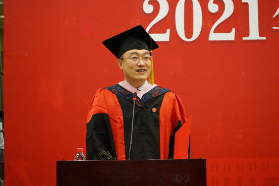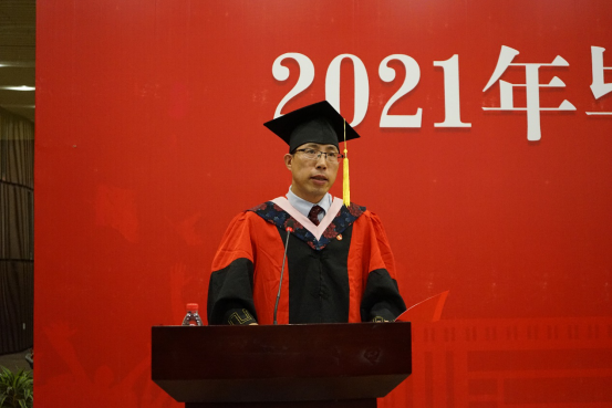 章宁书记在致辞中以党史育人,指出在建党一百周年的重要时刻,今年的毕业典礼显得格外有意义。从校园走进社会,这是一个充满无限可能的人生舞台,要不断超越自己,不断丰富内心的精神世界。回首百年中国浩瀚历史,中华民族正以欣欣向荣的景象走向第二个百年。实现中华民族的伟大复兴,是历史赋予我们每一个中国人的新的历史使命,也是我们必须树立的坚定信念。铭记历史,以史为鉴。多读书、多思考能够让我们形成独立的思想和人格,透过迷雾看清真相。希望大家能够坚持终身学习,不断获得人生智慧,去探索更广阔的未知世界,去构建更美好的社会秩序。当前,科学研究范式正在发生巨大变化,学科交叉融合不断发展。近几年永利集团304am登录聚焦大数据、人工智能、区块链等前沿信息技术,形成了电子商务、金融科技、共享经济等多个特色鲜明的交叉学科方向。希望同学们不忘初心,青春朝气永在,勇于创新,顽强拼搏,为建成世界科技强国贡献一份自己的力量。