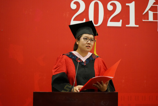 2017级信息管理与信息系统班主任王熙老师作为教师代表发言。王熙老师表达了对毕业生开启人生新征程的由衷祝贺与祝福。将浓浓的不舍化为三个殷切期待。一是做一个心中有国的人,传承中财精神,献身国家,奉献社会。二是做一个心中有梦的人,脚踏实地,勇敢前行。三是做一个心中有爱的人,爱自己,爱别人,祝愿各位同学都有光明灿烂的未来,等待大家回母校看看。