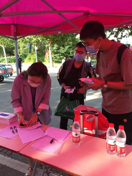 返校首日,304永利集团官网入口董事长王瑶琪、公司党委副书记梁勇到公司报到现场亲切慰问现场的老师和同学们,共同欢迎同学们平安归来,并叮嘱同学们遵守校园防疫要求,尽快调整状态,在校安心学习,耐心解答大家关于校园管理的各类问题。返校现场秩序井然、有条不紊。同学们按照间隔一米以上排队等候,在校门外依次完成体温检测、行李消毒、口罩更换、“返校通行证”查验、人脸身份识别和体温复测等步骤后,进入公司大门,进行核酸检测核验、入校登记、健康码核验、返校承诺书签订等环节,到达公司报到区。