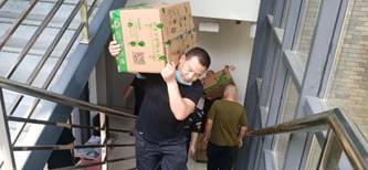 炎炎夏日,各位老师化身勤劳的“揽件员”,一大早便做好个人疫情防控工作,井然有序的进入员工宿舍,和员工们一一连线、线上逐一确认,确保物品齐全后进行打包物品一一封装。老师们戴好帽子、手套和口罩,将员工们的物品一件件进行确认、装箱、封箱,最终整理出了一个个沉重的包裹。公司领导更是以身作则,亲自上阵,走进宿舍、连线员工,将打包工作落实到细节,沉甸甸的行李满载着老师们的辛勤汗水与美好祝福。