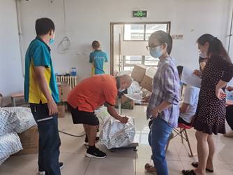 对于邮寄的部分,7月20日公司老师和邮局的工作人员们协作将910个包裹进行称重、验收、保价分类、最后封装、搬运、装车,护送出校园。