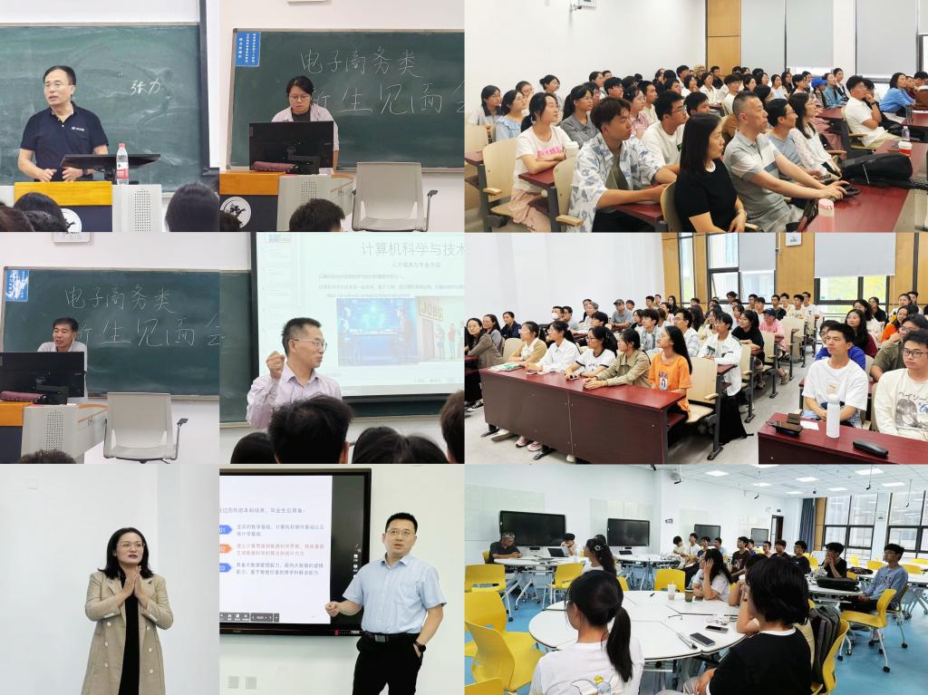 “经理第一课”后,电子商务类、计算机类、数据科学与大数据技术三个专业分别于主教208、213、210教室举行了分专业见面会。学科带头人朱建明教授、信息管理系主任王熙副教授、电子商务系主任李雪峰副教授、计算机科学与技术系主任陈福教授、网络空间安全系主任李洋副教授、大数据与人工智能系副主任李燕博士和郭树行副教授为同学们详细介绍了各专业特色、团队队伍、培养目标与发展前景,并对同学们未来学业发展、学术科研等方面提出建议。在见面会现场,同学们与专业课老师近距离沟通交流,进一步增强了同学们的专业认同感和归属感。